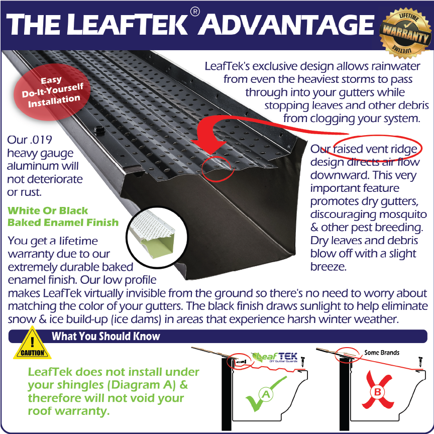 LeafTek does NOT install under your shingle. Gutter protection systems that install under your roof shingles may void your roof warranty.